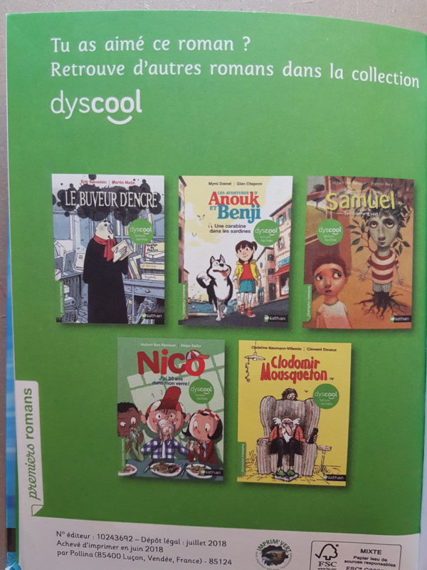 Chez Nathan, dans cette collection Dyscool, vous avez un choix assez large et varié en matière de romans quand on est dyslexique.