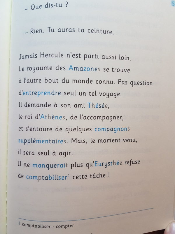 La police utilisée est lisible et l’auteur a réécrit certains passages pour que l’histoire soit plus facile à comprendre. Au fil de la lecture, on découvre que les syllabes des mots longs sont en couleur pour faciliter la prononciation. Le texte est aéré. Pour que la lecture soit agréable, il y a des illustrations quasiment une page sur deux. Chaque roman comporte en moyenne 60 pages. Cependant, l’histoire est rapidement lue comme vous pouvez le voir sur les photos ci-dessous :